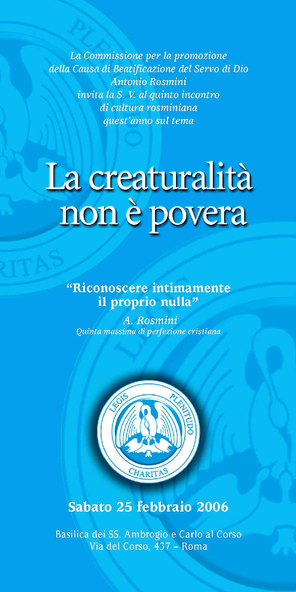 settimana rosminiana 18 – 25 febbraio 2006 “Antonio Rosmini: bellezza di una vita umile” |